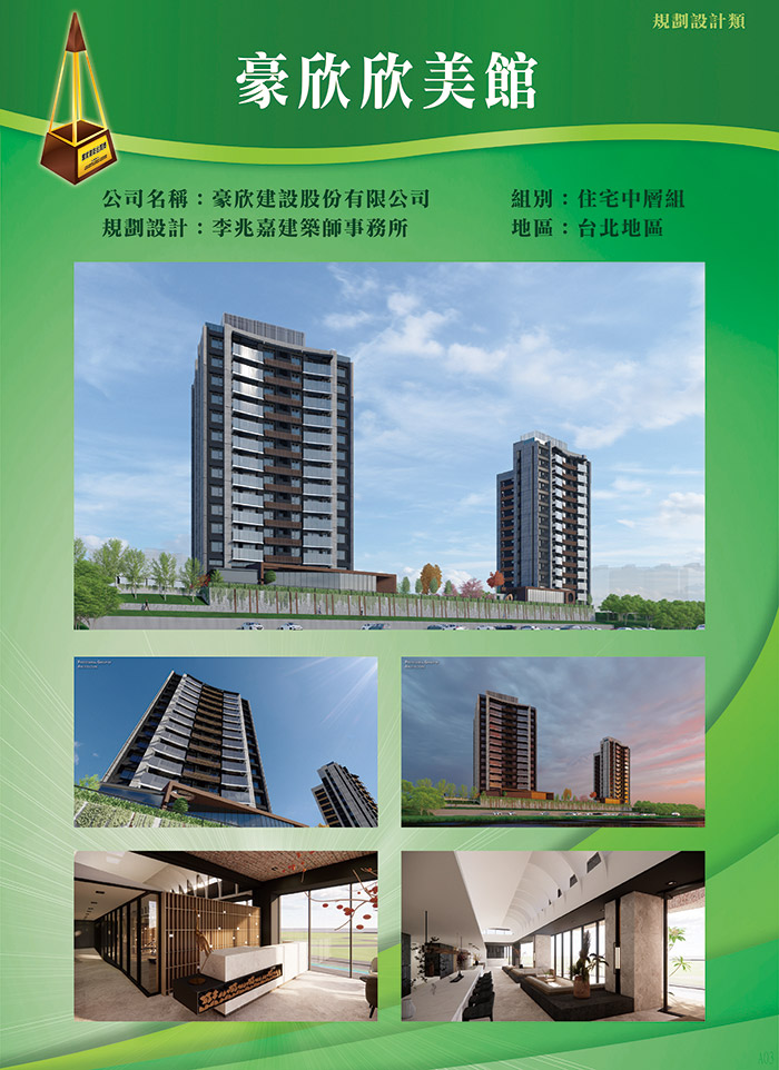 | 住宅中層組 | 豪欣欣美館 | 豪欣建設股份有限公司 | 台北地區 |