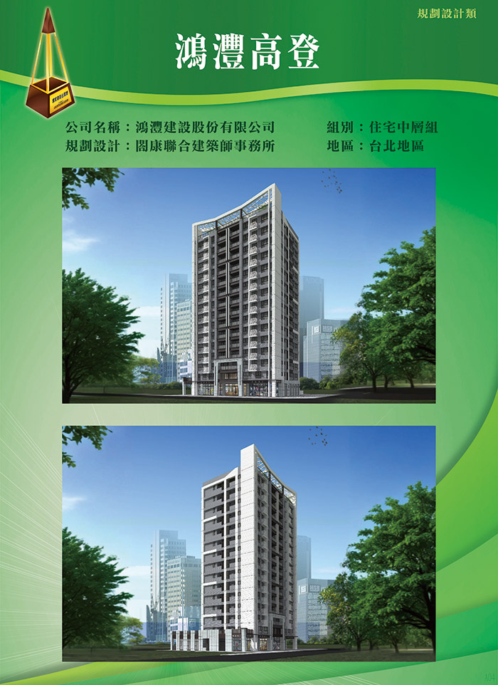 | 住宅中層組 | 鴻灃高登 | 鴻灃建設股份有限公司 | 台北地區 |