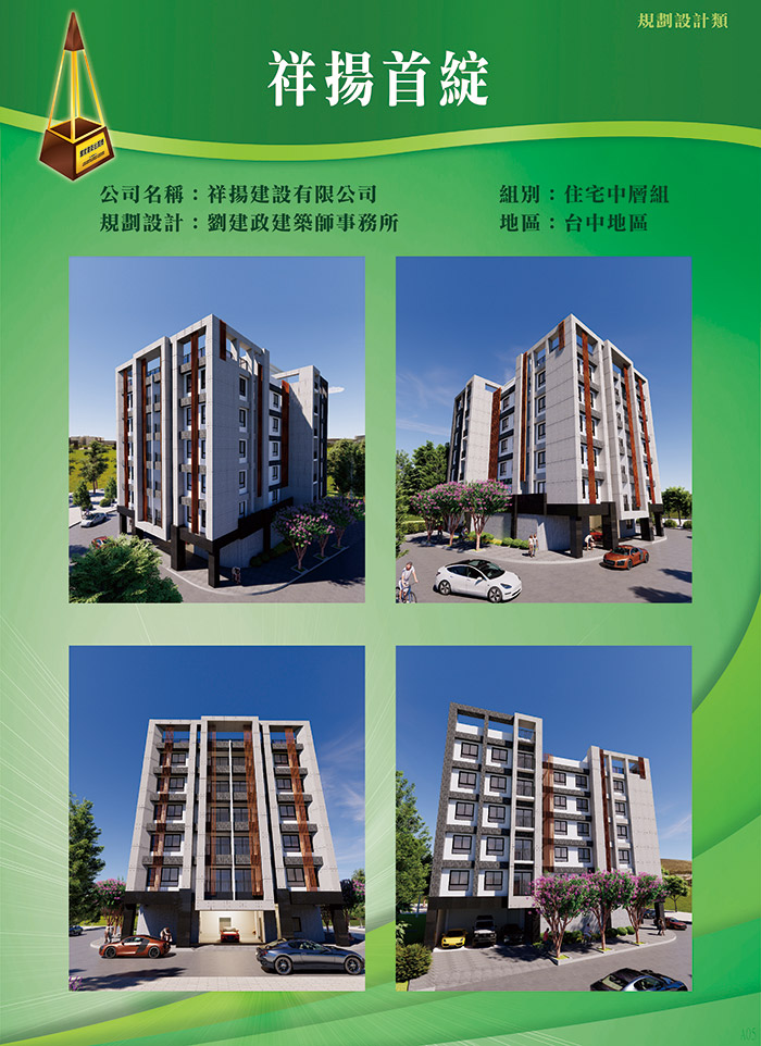 | 住宅中層組 | 祥揚首綻 | 祥揚建設有限公司 | 台中地區 |