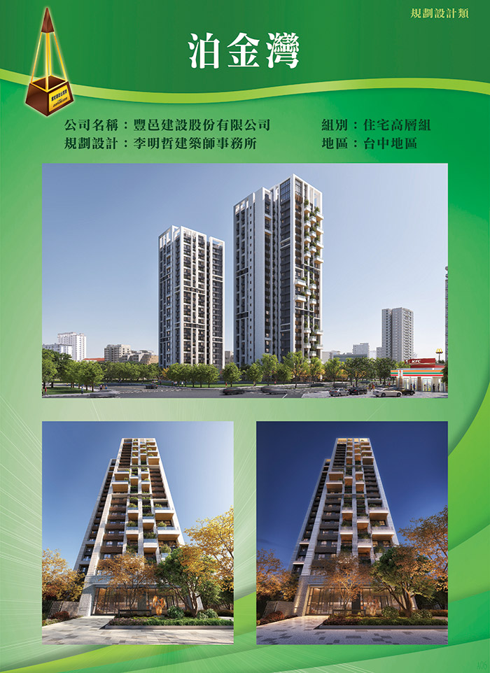 | 住宅高層組 | 泊金灣 | 豐邑建設股份有限公司 | 台中地區 |