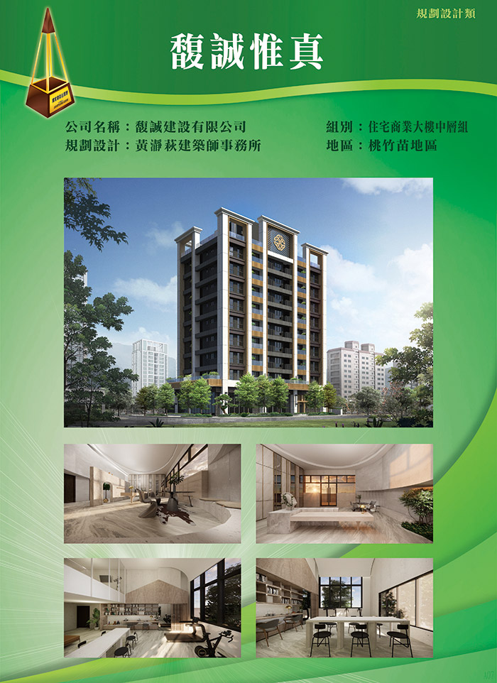 | 住宅商業大樓中層組 | 馥誠惟真 | 馥誠建設有限公司 | 桃竹苗地區 |