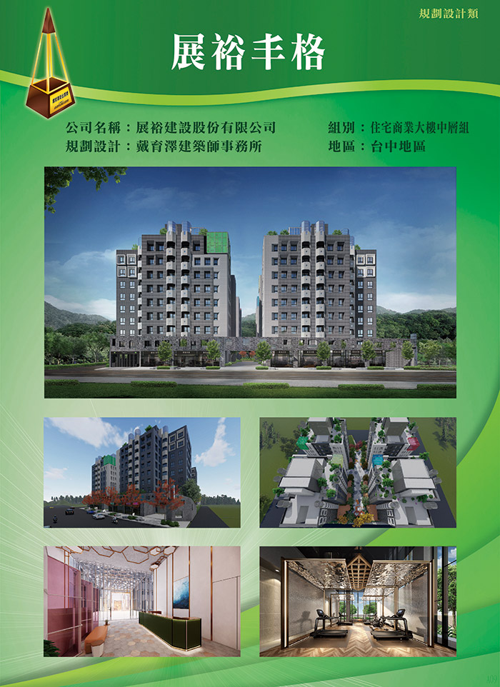 | 住宅商業大樓中層組 | 展裕丰格 | 展裕建設股份有限公司 | 台中地區 |