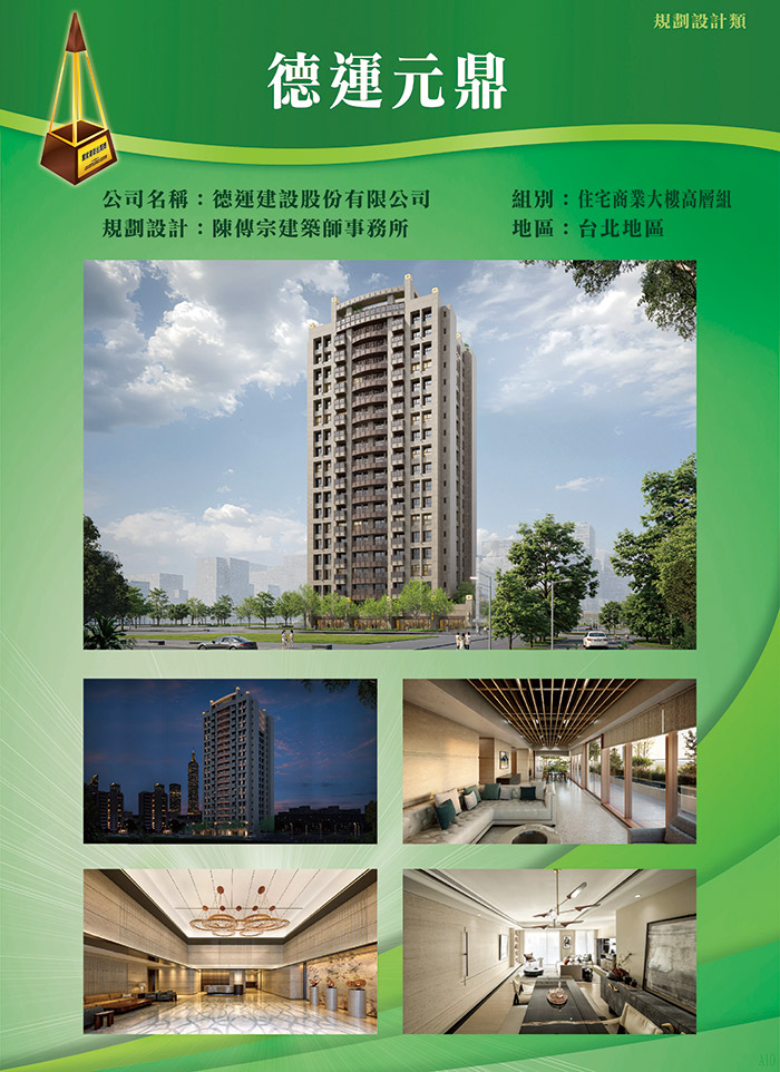 | 住宅商業大樓高層組 | 德運元鼎 | 德運建設股份有限公司 | 台北地區 |