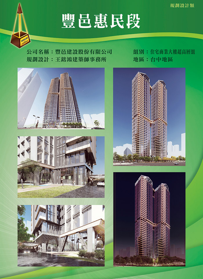| 住宅商業大樓超高層組 | 豐邑惠民段 | 豐邑建設股份有限公司 | 台中地區 |