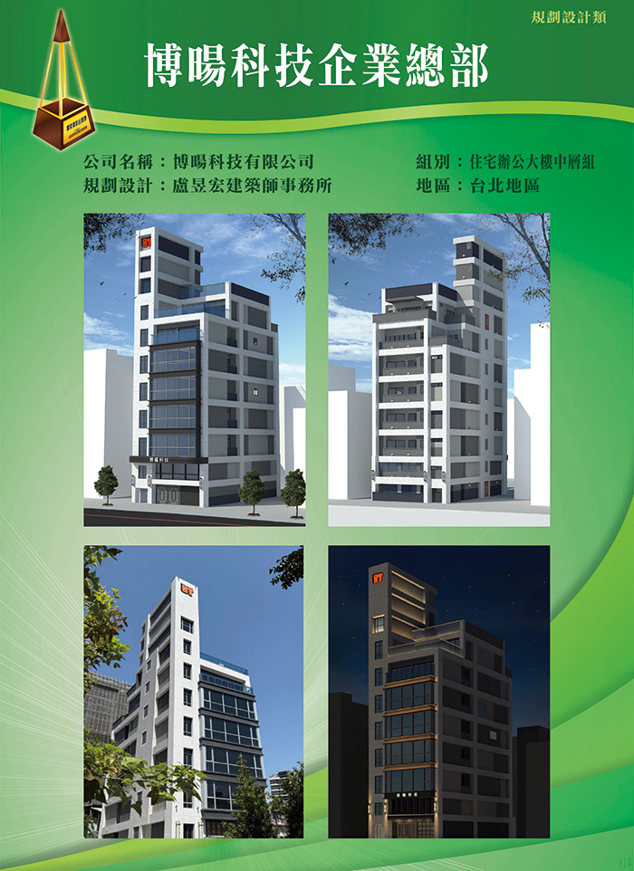 | 住宅辦公大樓中層組 | 博暘科技企業總部 | 博暘科技有限公司 | 台北地區 |