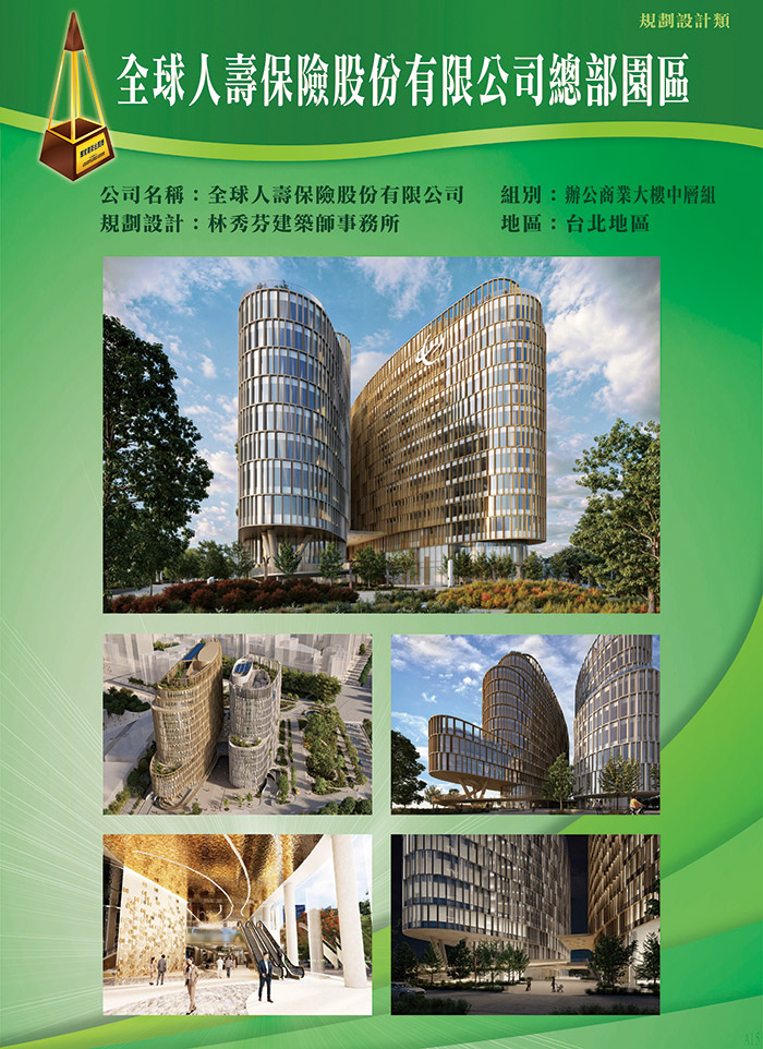 | 辦公商業大樓中層組 | 全球人壽保險股份有限公司總部園區 | 全球人壽保險股份有限公司 | 台北地區 |