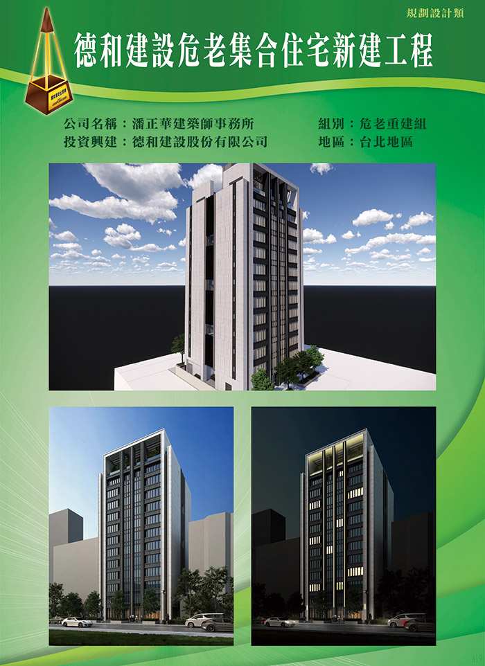 | 危老重建組 | 德和建設危老集合住宅新建工程 | 潘正華建築師事務所 | 台北地區 |