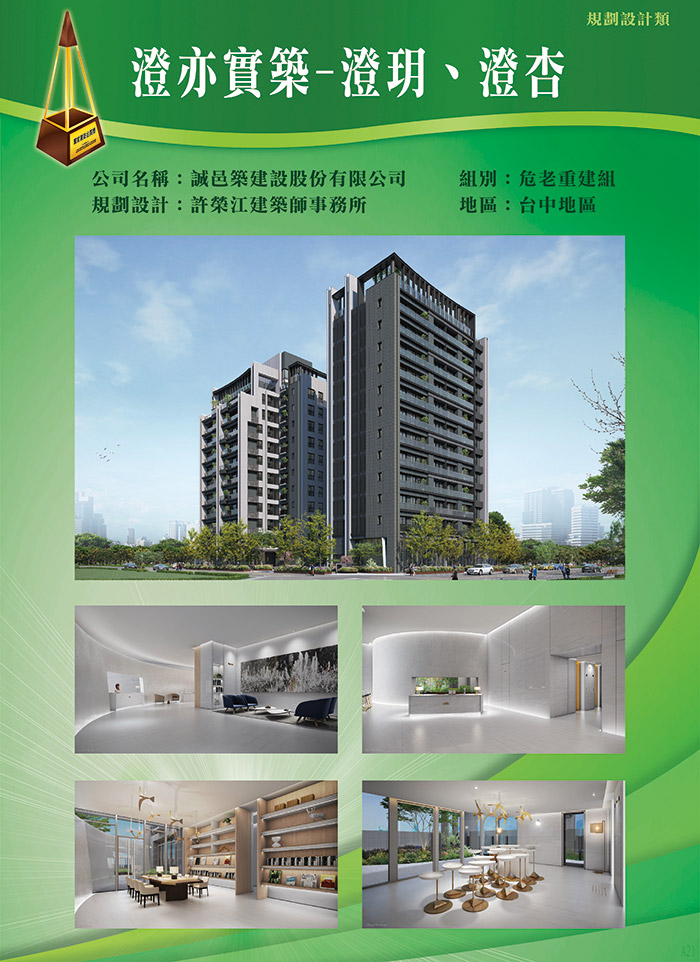 | 危老重建組 | 澄亦實築-澄玥、澄杏 | 誠邑築建設股份有限公司 | 台中地區 |