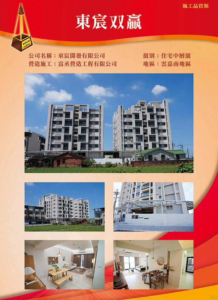 | 住宅中層組 | 東宸双贏 | 東宸開發有限公司 | 雲嘉南地區 |