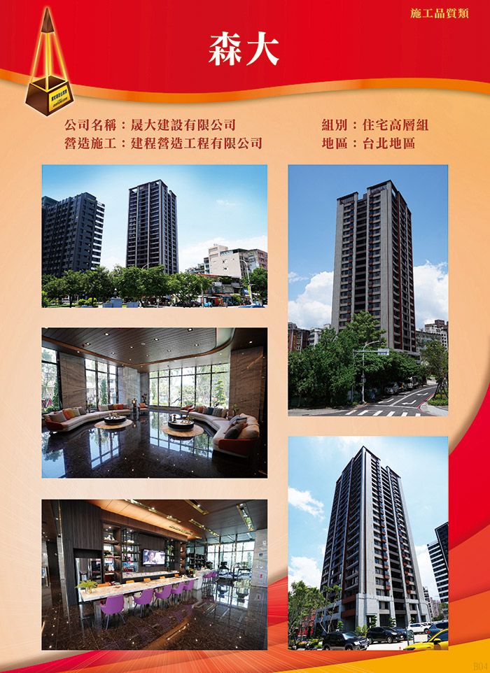 | 住宅高層組 | 森大 | 晟大建設有限公司 | 台北地區 |