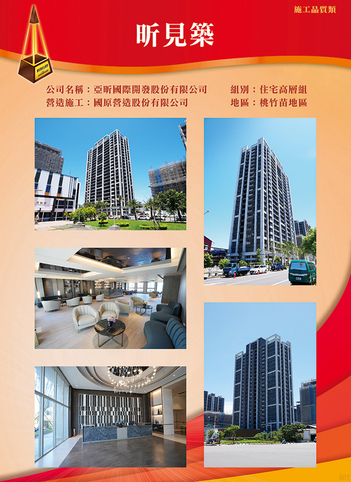 | 住宅高層組 | 昕見築 | 亞昕國際開發股份有限公司 | 桃竹苗地區 |
