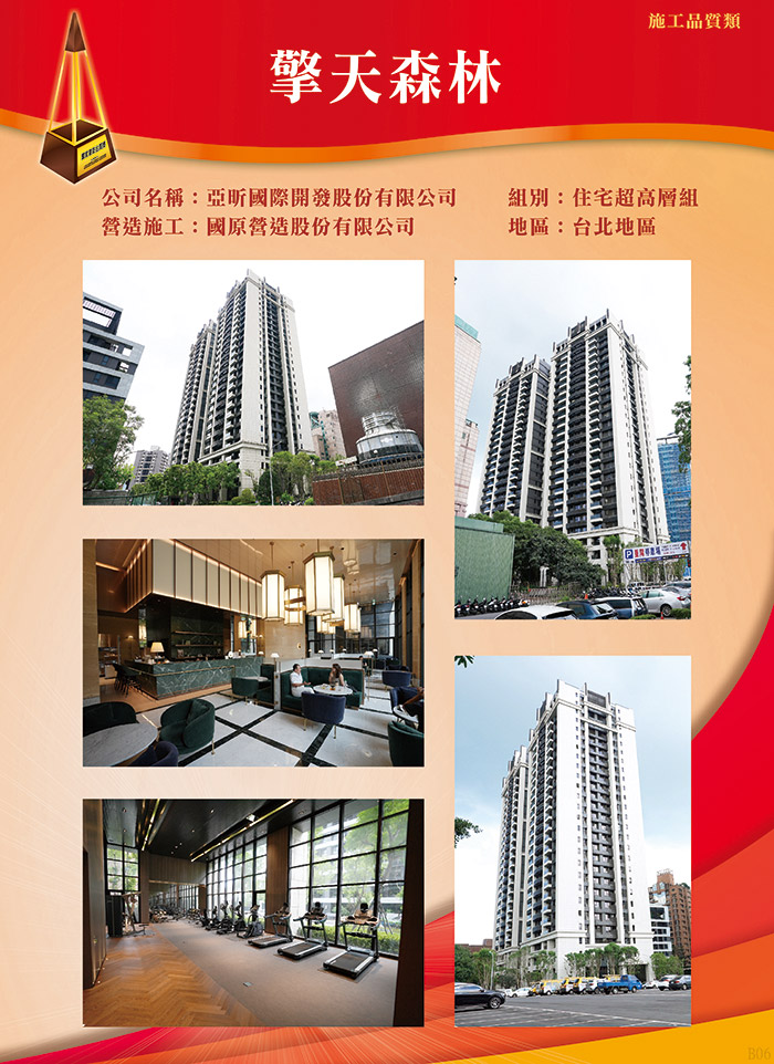 | 住宅超高層組 | 擎天森林 | 亞昕國際開發股份有限公司 | 台北地區 |