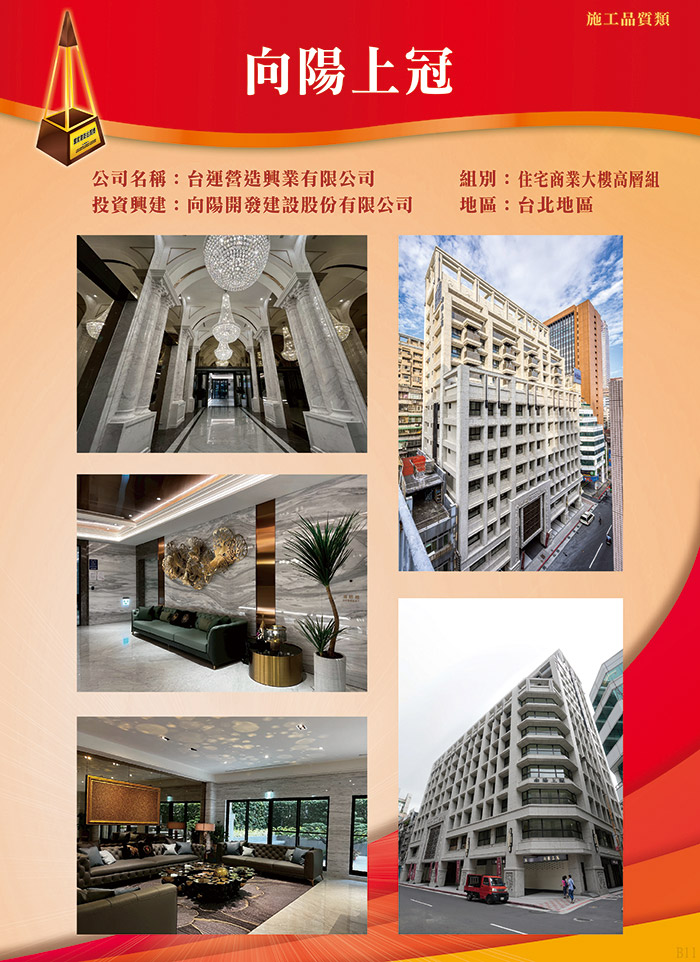 | 住宅商業大樓高層組 | 向陽上冠 | 台運營造興業有限公司 | 台北地區 |