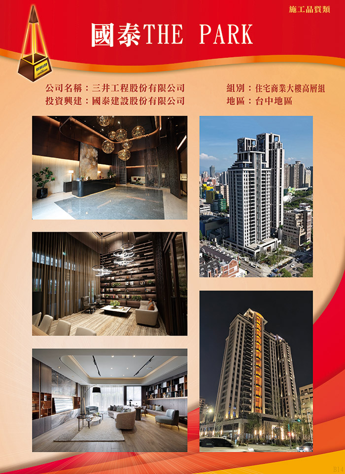 | 住宅商業大樓高層組 | 國泰THE PARK | 三井工程股份有限公司 | 台中地區 |