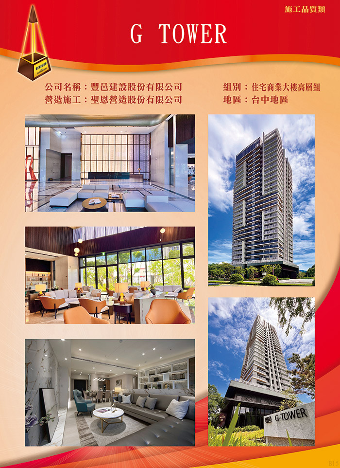 | 住宅商業大樓高層組 | G TOWER | 豐邑建設股份有限公司 |
