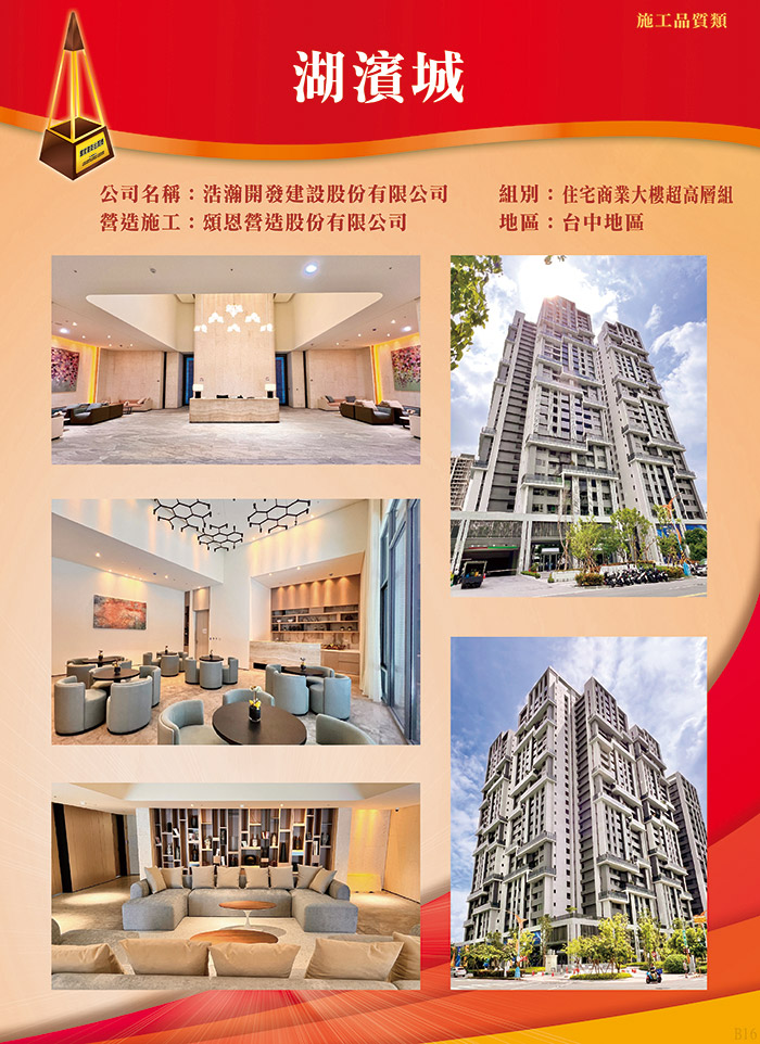 | 住宅商業大樓/超高層組 | 湖濱城 | 浩瀚開發建設股份有限公司 | 台中地區 |