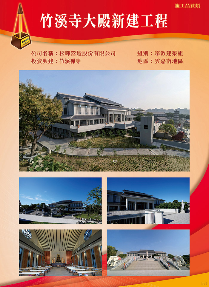 | 宗教建築組 | 竹溪寺大殿新建工程 | 松暉營造股份有限公司 |