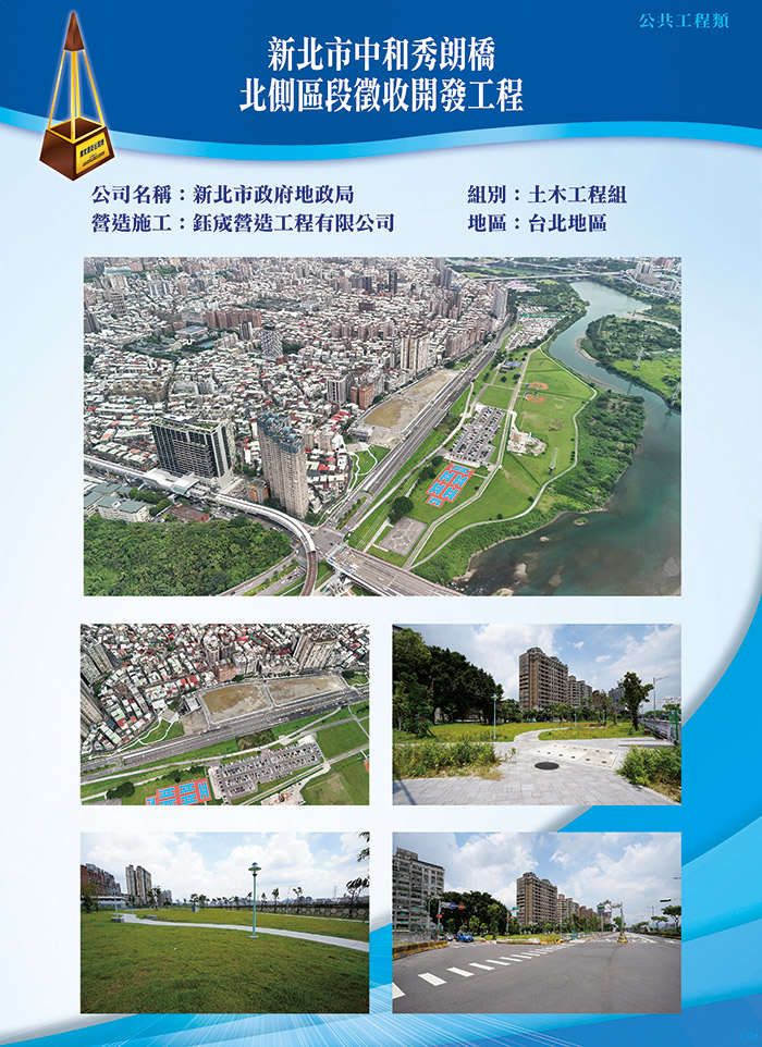 | 土木工程組─重劃區工程 | 新北市中和秀朗橋北側區段徵收開發工程 | 新北市政府地政局 | 台北地區 |