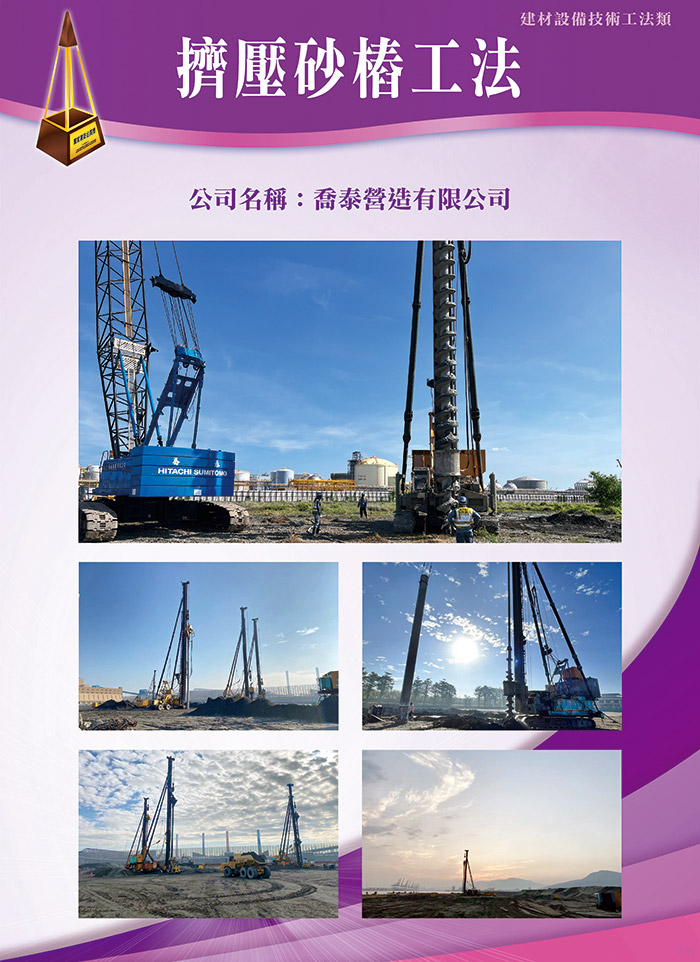 | 技術工法組 | 擠壓砂樁工法 | 喬泰營造有限公司 |